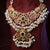 South Indian Ruby Emerald Kundan Necklace + Earrings with Rice Pearls